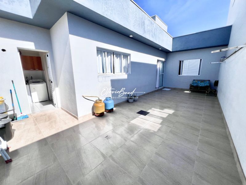 O pavimento térreo é composto pela sala de estar integrada com a copa e cozinha, a lavanderia tem armários e a área externa conta com quintal.