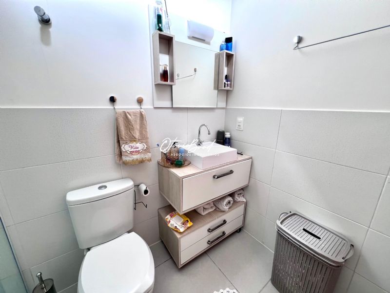 No pavimento superior se concentram os 3 (três) dormitórios e o banheiro comum.